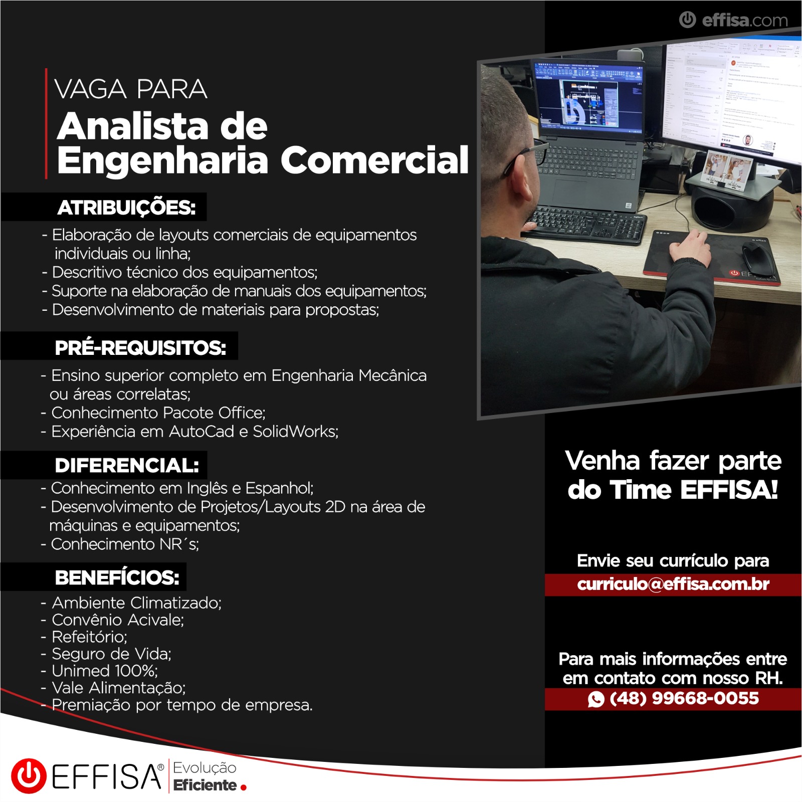 • Conhecimentos básicos Solid Works, Informática, autocad;